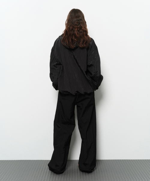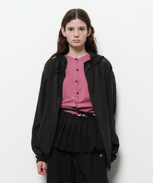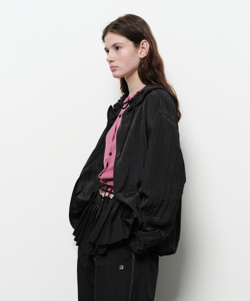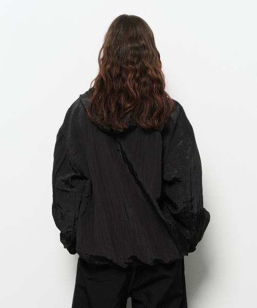 - 은은한 광택감을 가진 크링클 나일론 소재의 후디 집업.