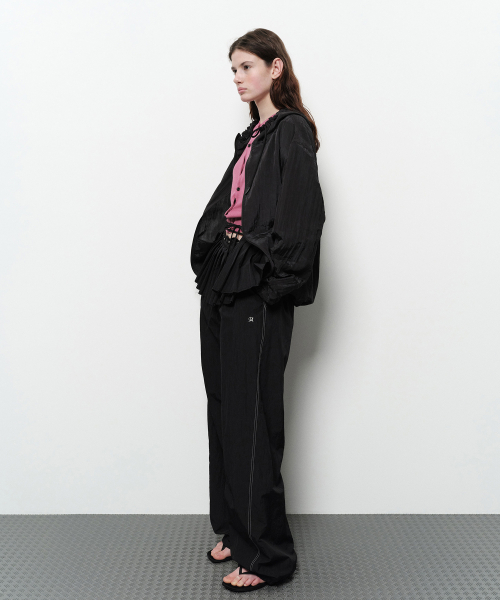 - 밑단 스트링과 내장된 스토퍼로 사이즈 조절 가능.