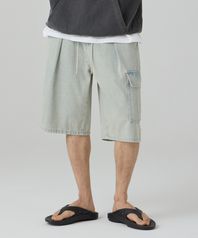 워시드 스트링 카고 버뮤다 데님팬츠 연청