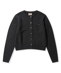 (우먼) 스몰 스퀘어 로고 니트 가디건_차콜