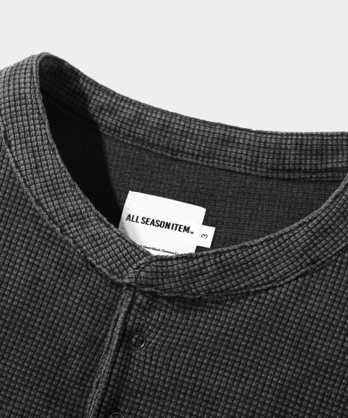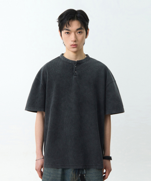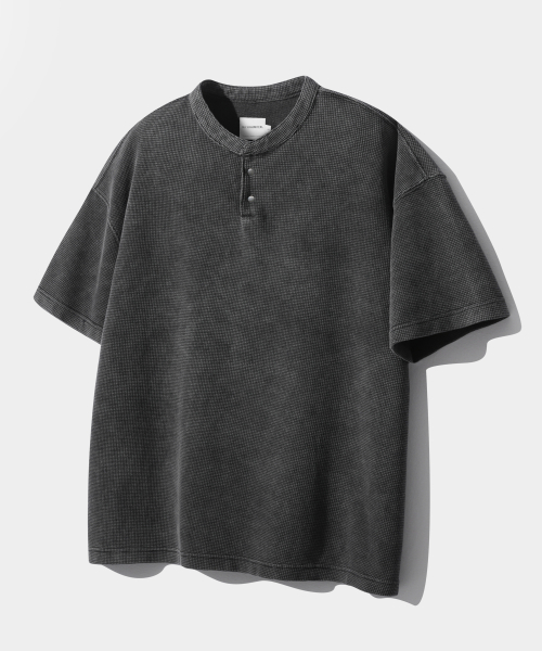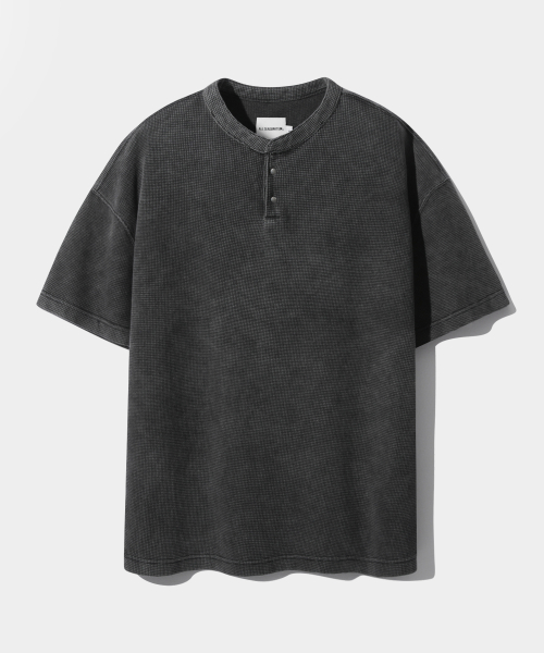 ASI 에센셜 와플 헨리넥 반팔 티셔츠_피그먼트 차콜