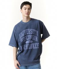 WISCONSIN 크랙 피그먼트 반팔 티셔츠 (네이비)