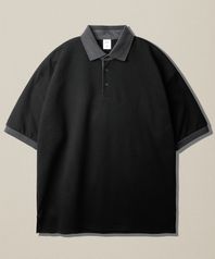 체스 링거 카라 반팔티셔츠 블랙 KJST2616