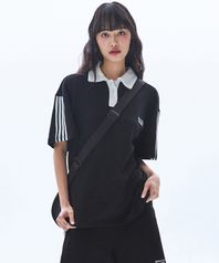 [이채연 착용] 에센셜 트랙 와플 카라 반팔 티셔츠_블랙