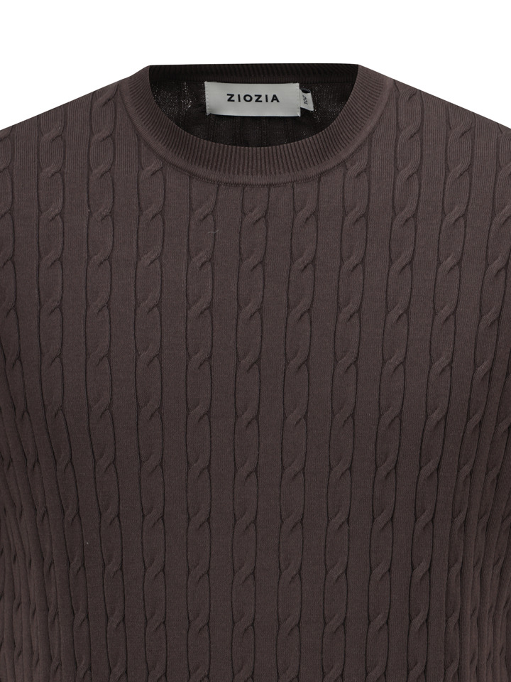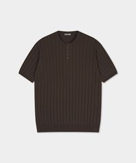 썸머 워셔블 골지 헨리넥 니트 - 브라운