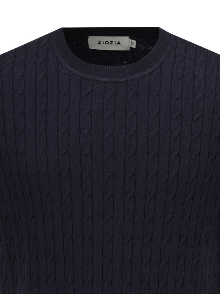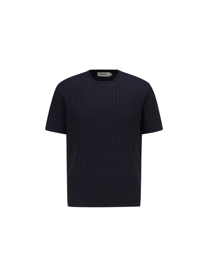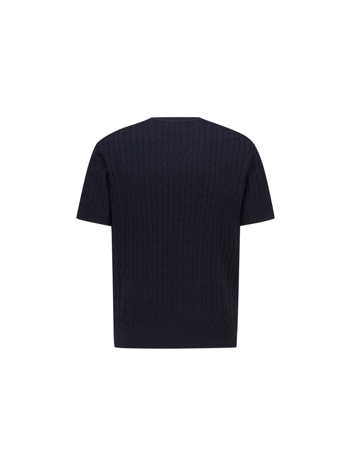 코튼 케이블 크루넥 반팔 스웨터 (다크네이비) (BBWRMBZ203)