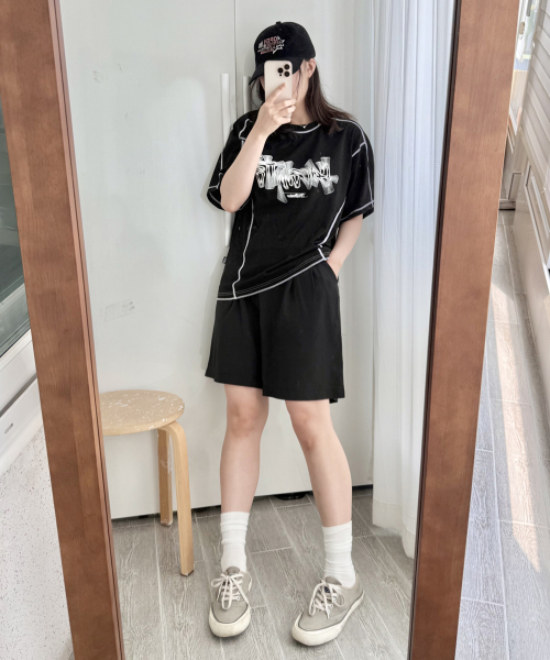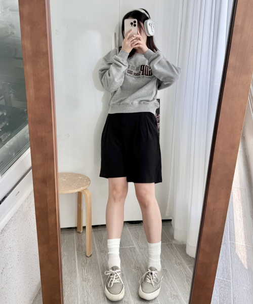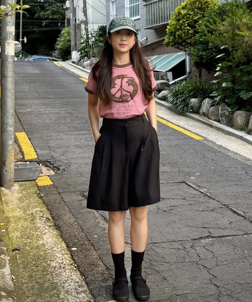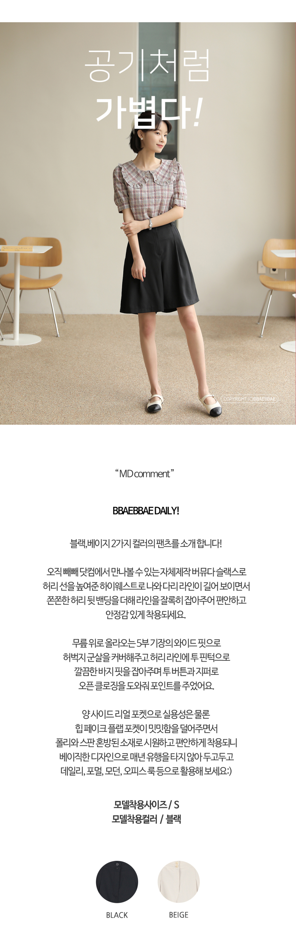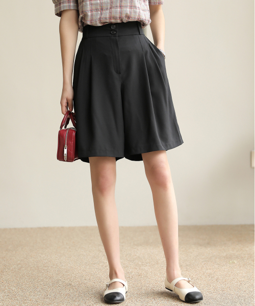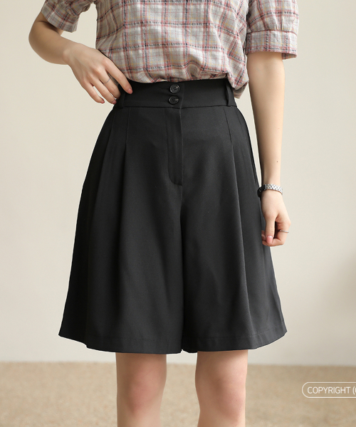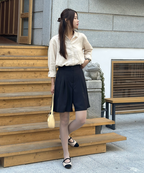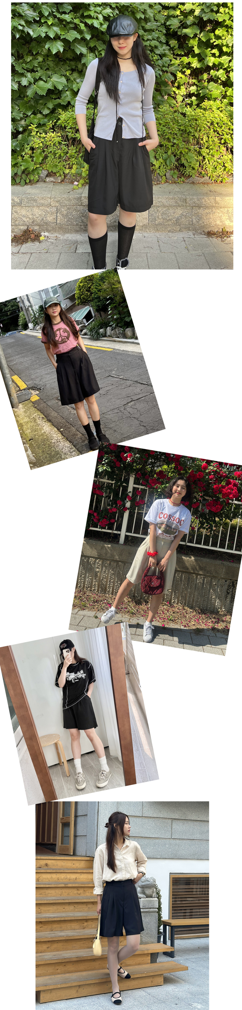 뒷밴딩 투핀턱 와이드핏 5부 버뮤다 팬츠