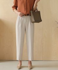 베이지 커브드 절개라인 와이드 코튼 팬츠