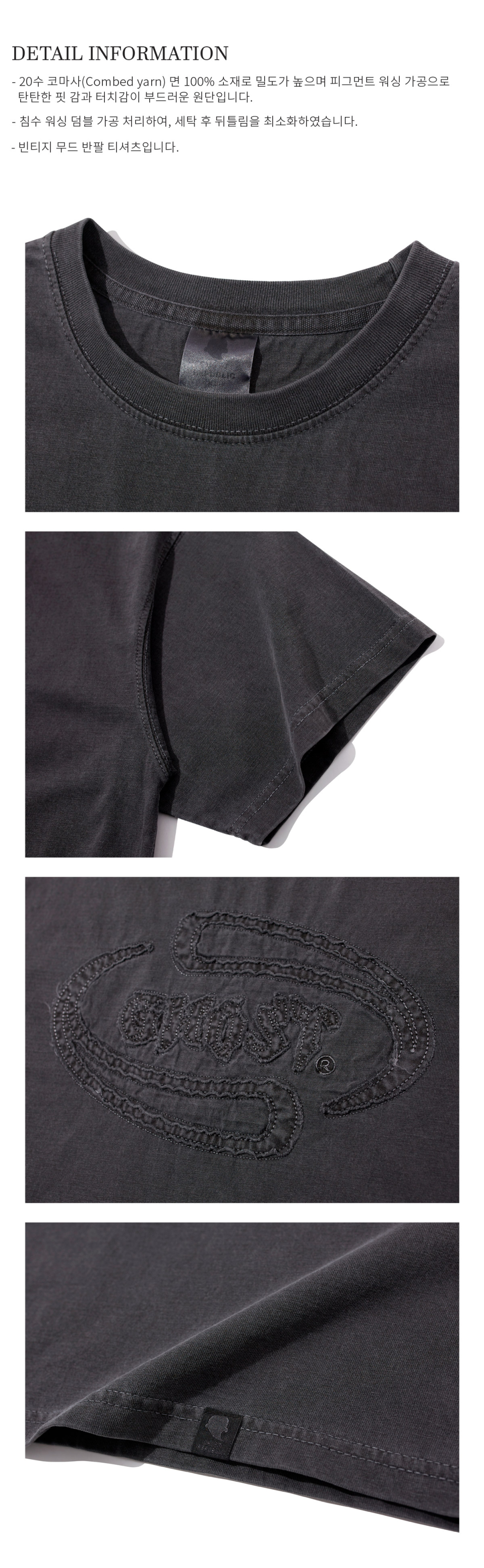 아플리케 자수 피그먼트 반팔티 GT-373