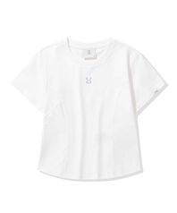 (우먼) 라인 크롭 반팔 티셔츠_화이트