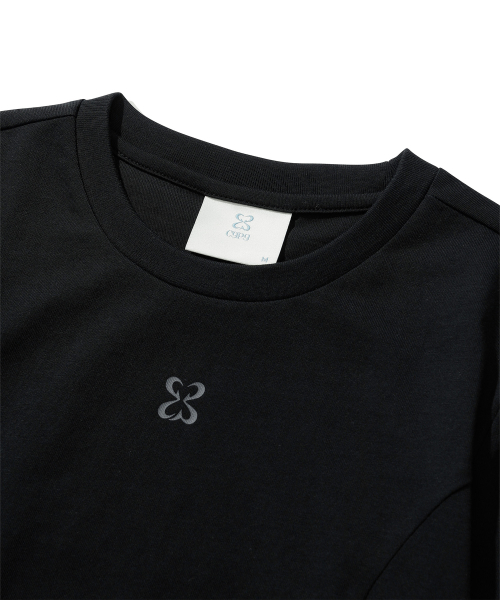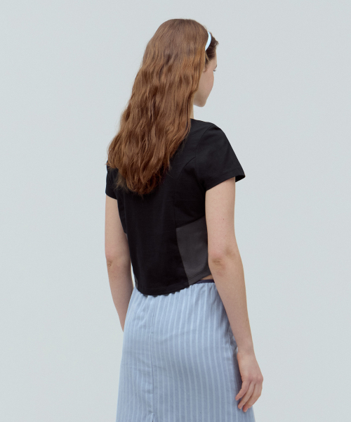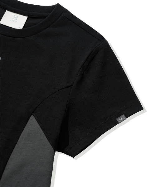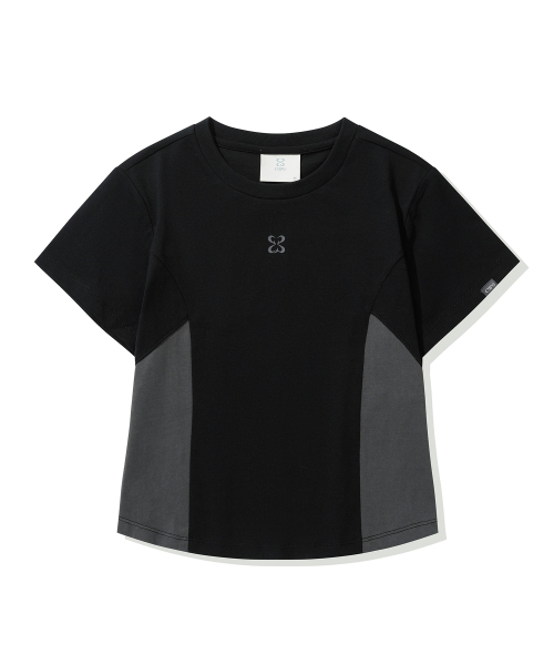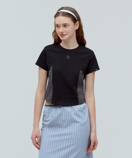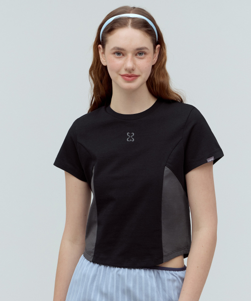 (우먼) 라인 크롭 반팔 티셔츠_블랙