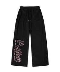 체크 레터링 프린트 옆턱 와이드 스웻 팬츠 [5color]