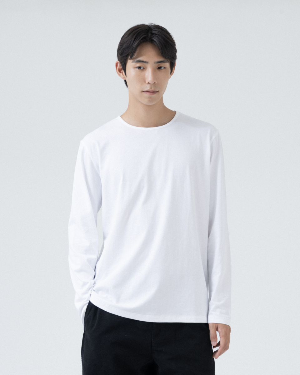 스탠다드 실루엣의 활용도 높은 에센셜 롱 슬리브입니다.
