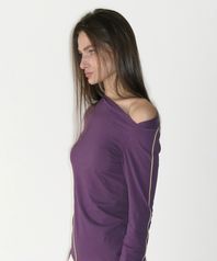 Asymmetric Paneled Long Sleeve Top, PURPLE
