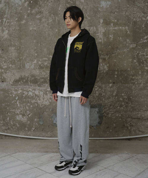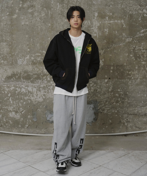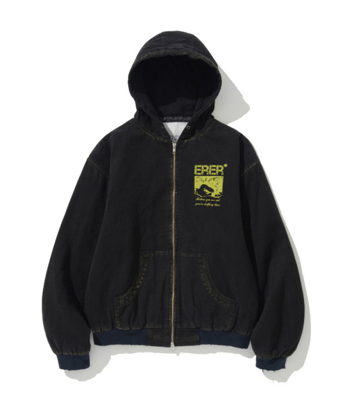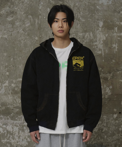 [UN] Mechanic sweatshirt zip-up hoodie Black