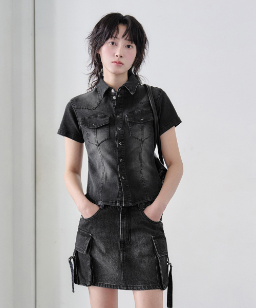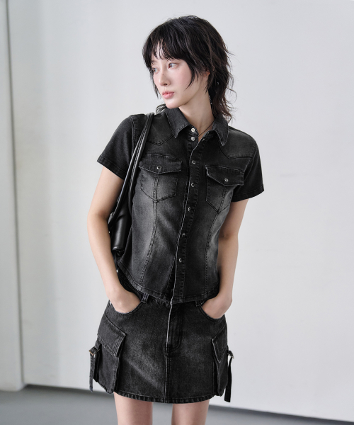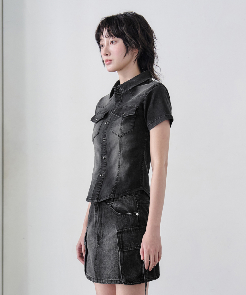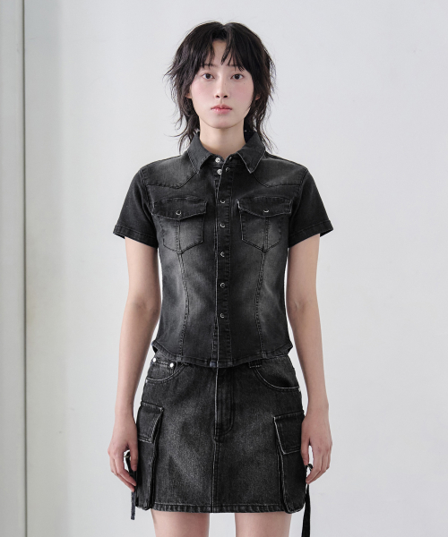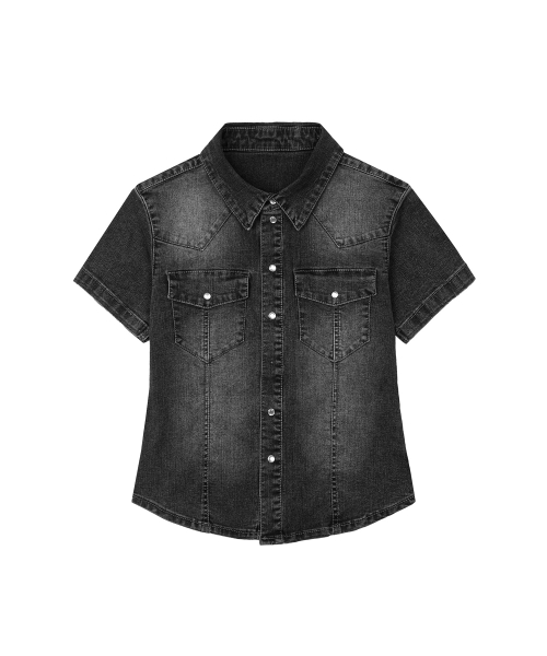 Western Slim Denim Short Shirts DCWSH002BlackA