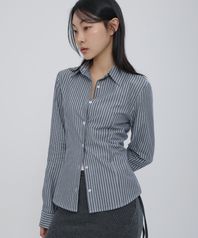 스트라이프 슬림핏 셔츠 네이비