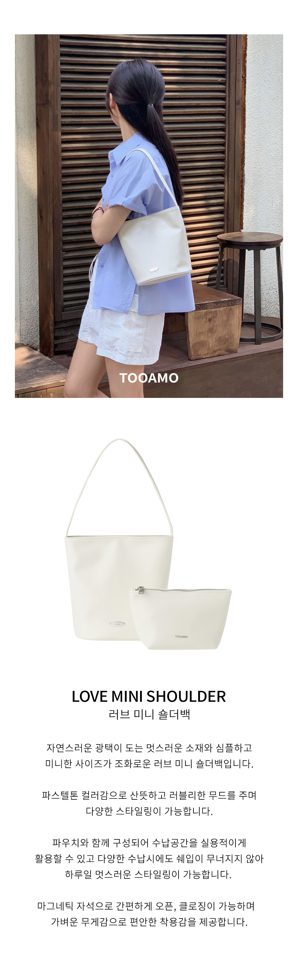 투아모(TOOAMO)는 여성들의 취향에 맞는 단순하면서도 세련된 디자인을 추구하며, 일상에서 늘 함께할 수 있는 제품을 디자인하고 만드는 디자이너 브랜드입니다.
