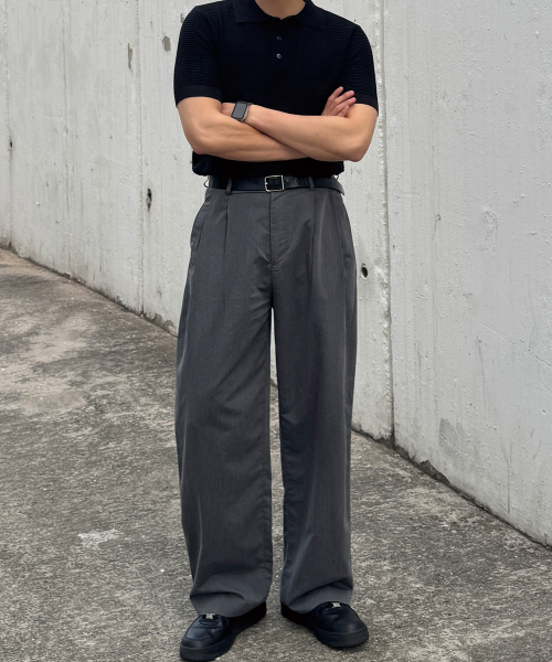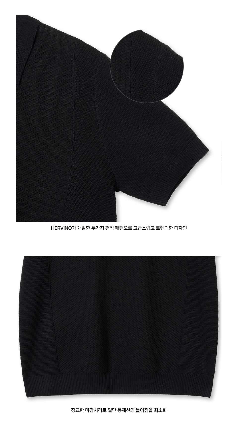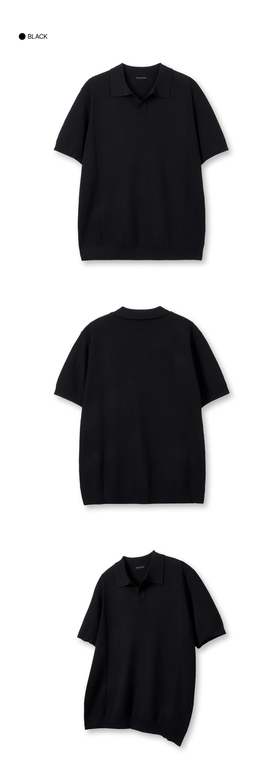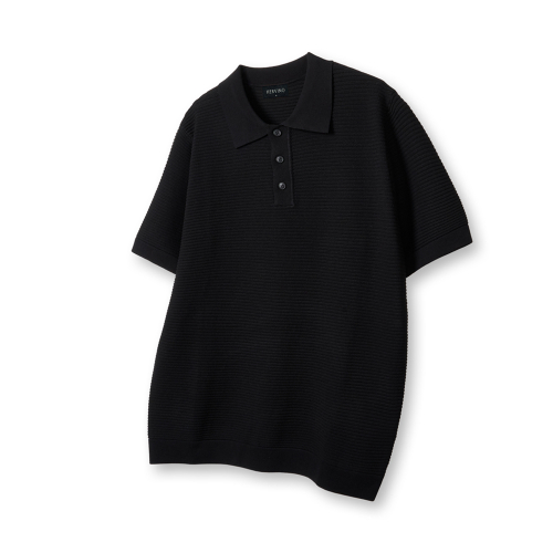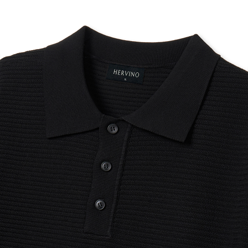 케이블 카라 머슬핏 반팔 니트[블랙]