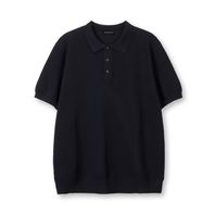 컴포트 버튼 머슬핏 카라 반팔 니트[네이비]