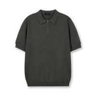 소프트 하프집업 머슬핏 카라 반팔 니트[다크그린]