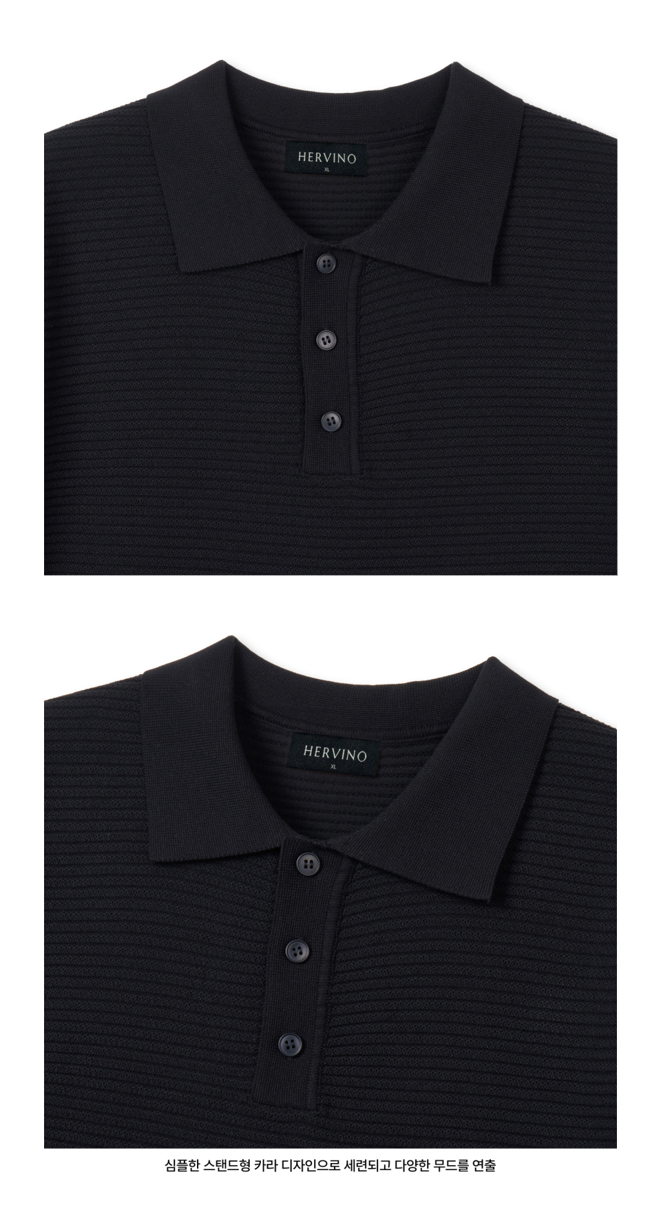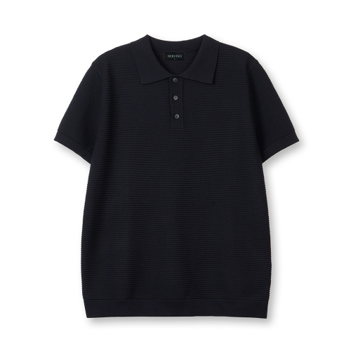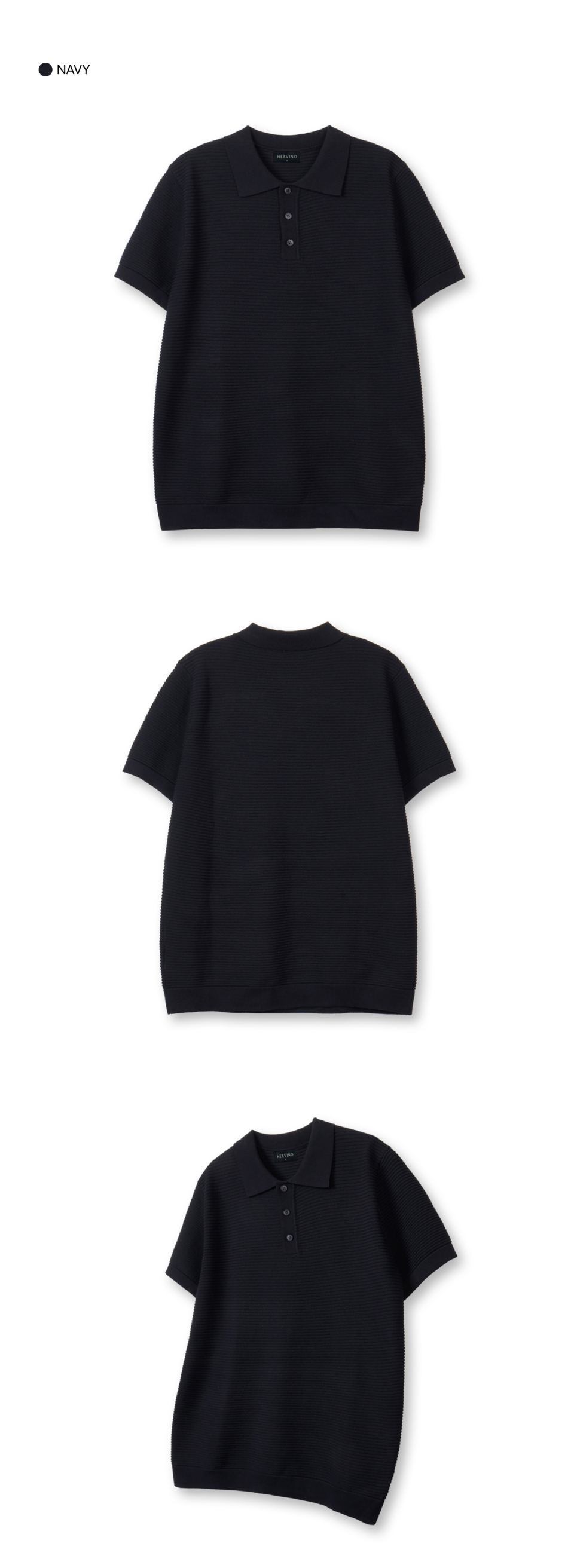 컴포트 버튼 머슬핏 카라 반팔 니트[네이비]
