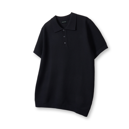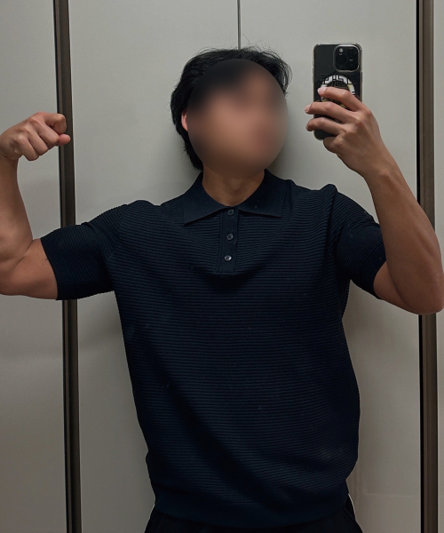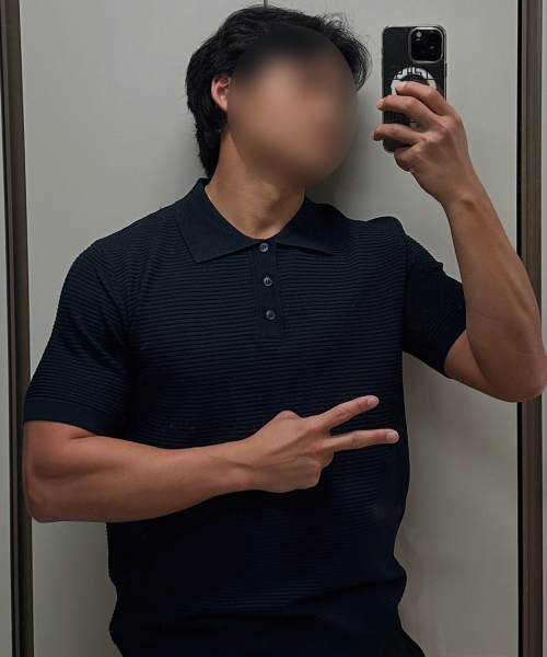 케이블 카라 머슬핏 반팔 니트[네이비]