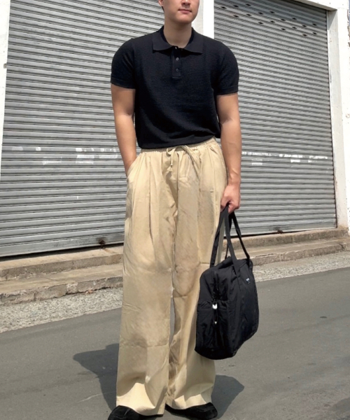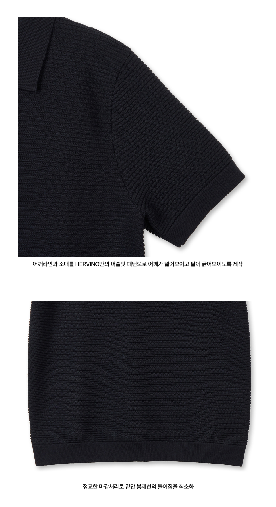 케이블 카라 머슬핏 반팔 니트[블랙]