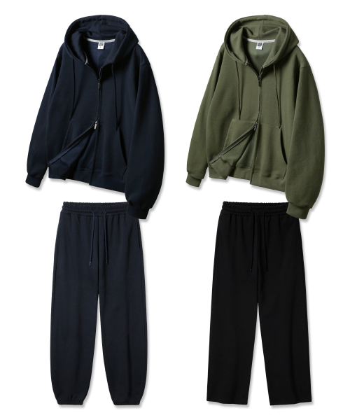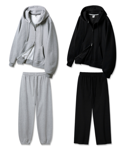 [SET] 무지 2WAY 오버핏 후드집업 와이드 트레이닝팬츠 4 Color [ULZU_4001]