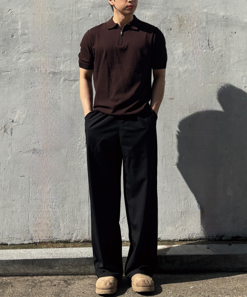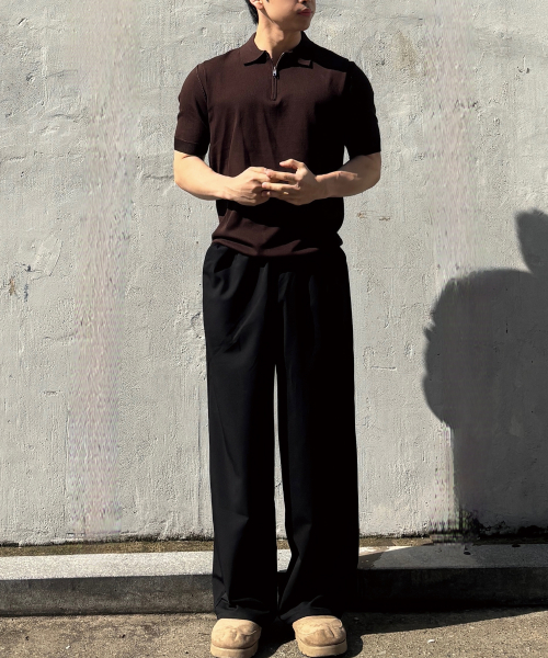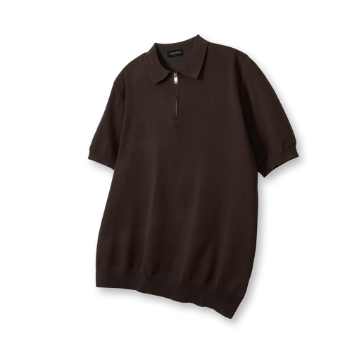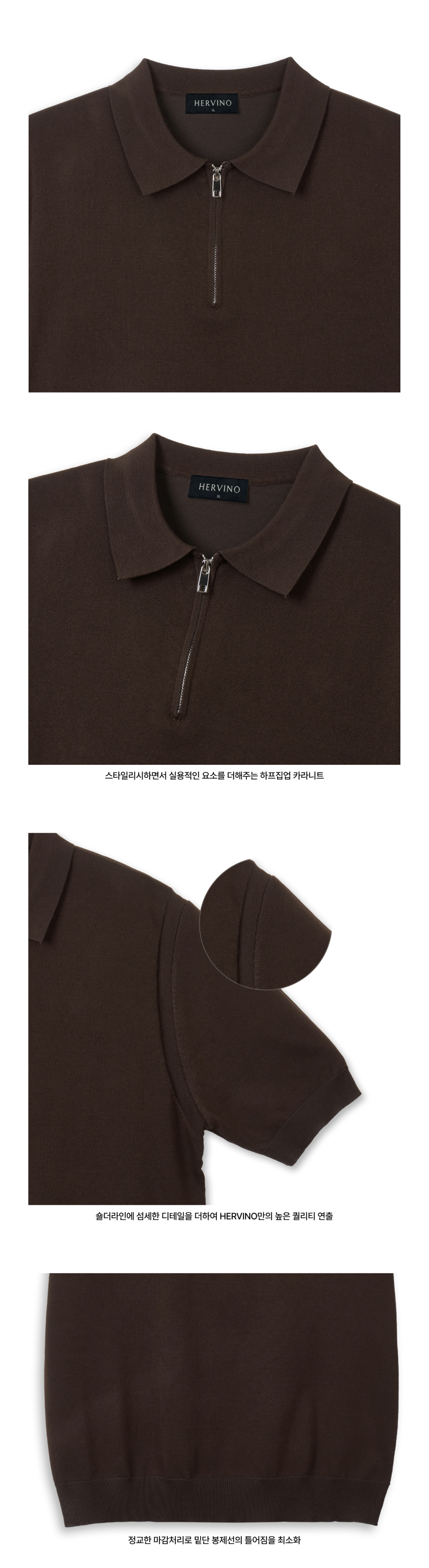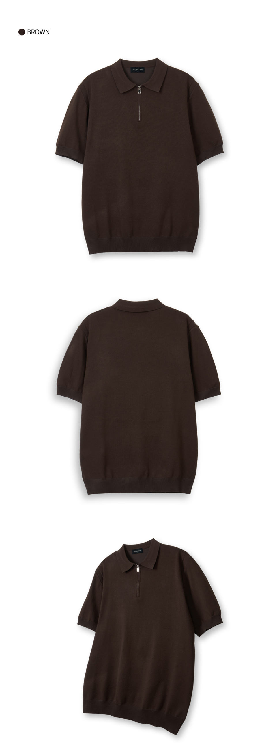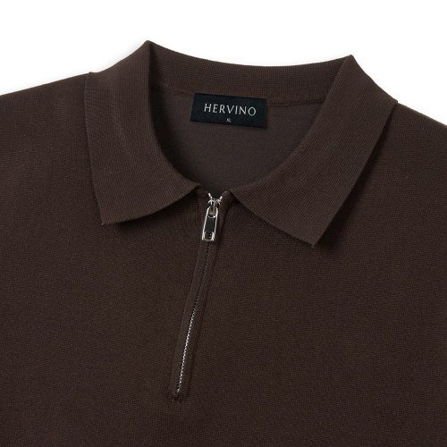 소프트 하프집업 머슬핏 카라 반팔 니트[브라운]