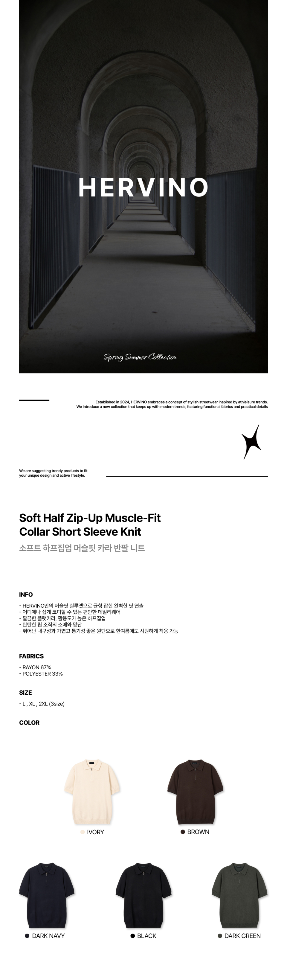 에르비노(HERVINO)는 현대적이고 스타일리시한 스포츠 패션을 선도하는 브랜드입니다. 'Herma'와 'Vino'라는 두 단어를 결합하여 이름을 짓고 있는 에르비노는, 우리의 한계를 넘어서는 도전과 혁신을 상징합니다. 기본에 충실하면서도 깊이감 있는 세련된 디자인으로 베이식과 캐주얼 스타일을 완벽하게 결합하여, 일상생활에서도 편안하면서도 세련된 룩을 완성할 수 있도록 합니다.