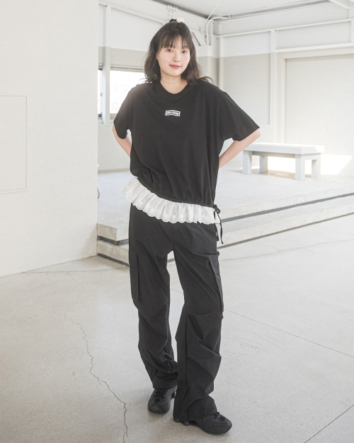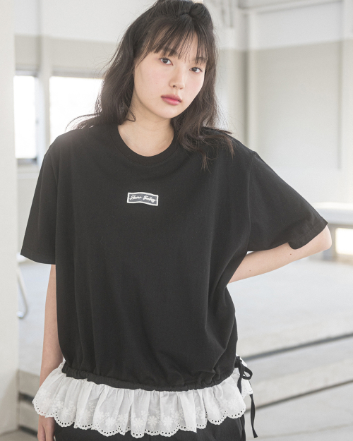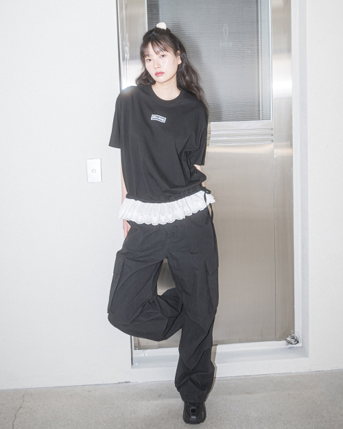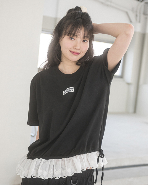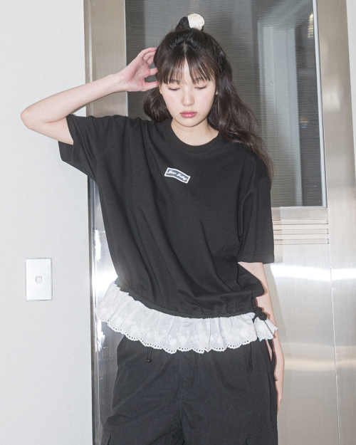 LAYERED LACE OVERSIZE S/S TEE(BLACK)