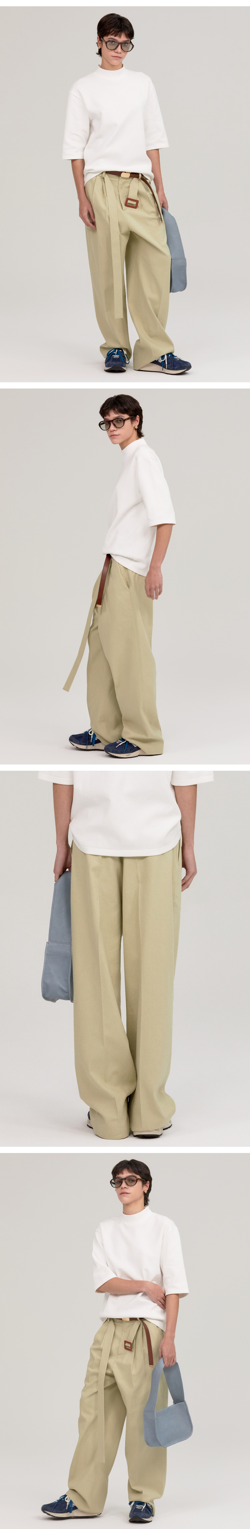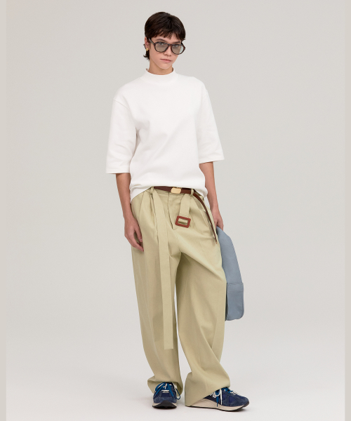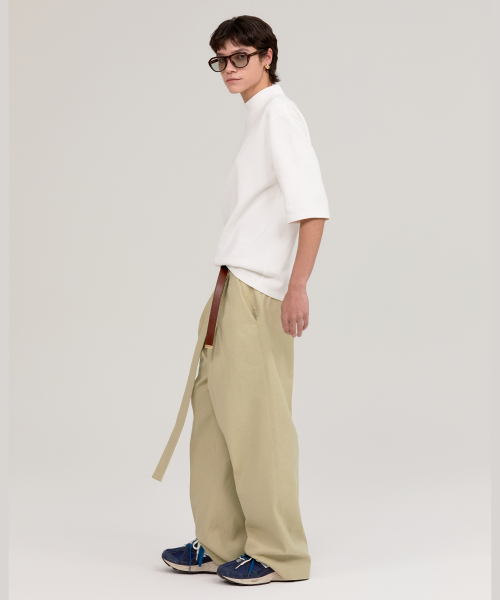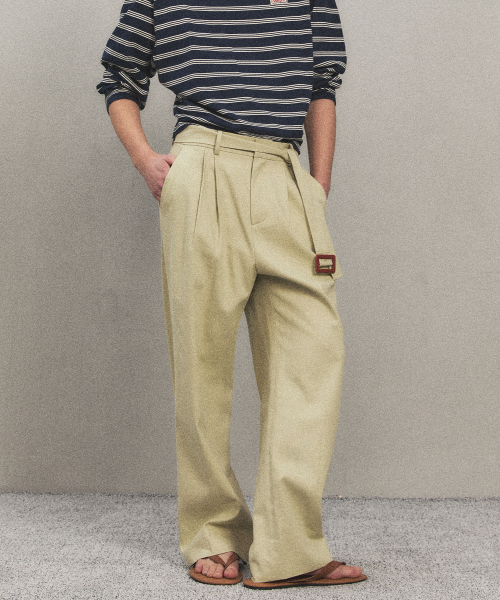 LINEN BELTED CHINO PANTS LIGHT KHAKI