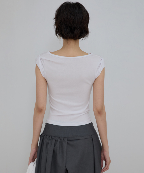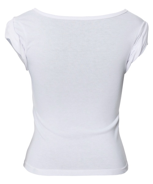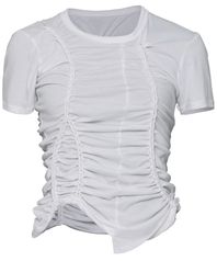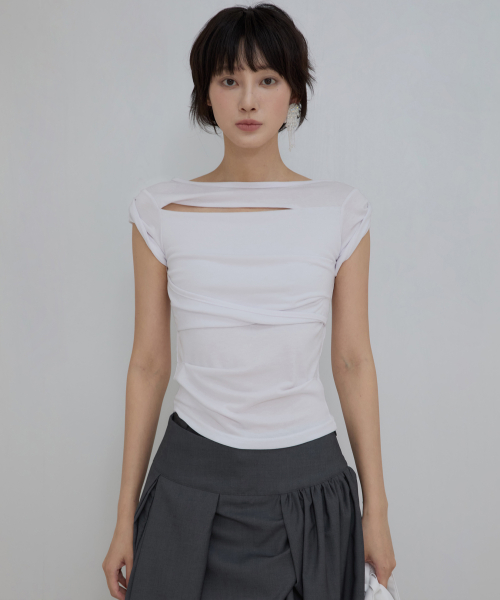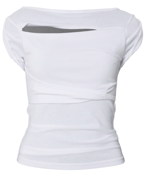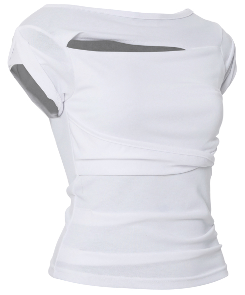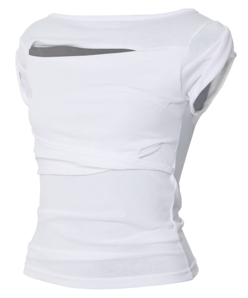 Asymmetrical Draped Roll-Up T-Shirt (FL-165_White)
