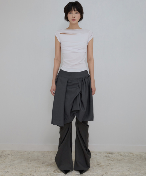 [유인 PICK] Asymmetrical Draped Long Skirt (FL-263_Dark Gray)