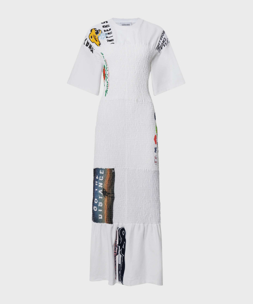 (W) 업사이클드 셔링 티셔츠 화이트 UPCYCLED SHIRRED T-SHIRTS LONG FITTED DRESS