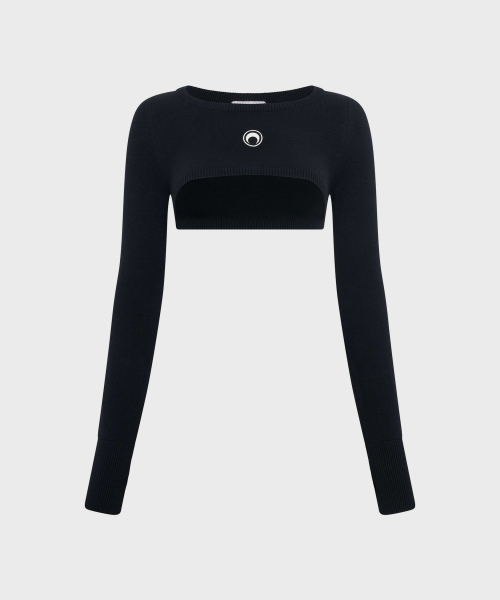 (W) 문 로고 니트 울트라 크롭드 스웨터 블랙 MOON LOGO KNIT ULTRA CROPPED SWEATER