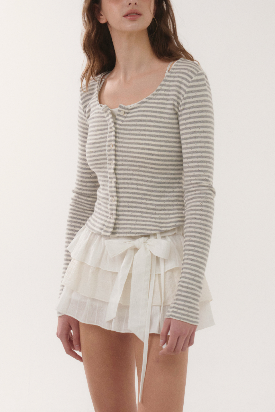 JEANIE STRIPE CARDIGAN [MELANGE GREY]