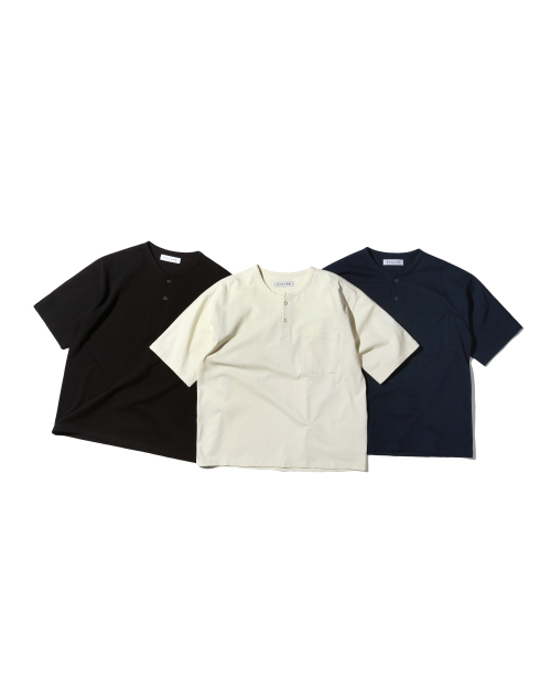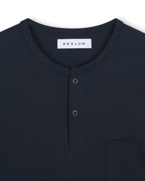 LOOSE FIT HENLEY NECK T-SHIRT NAVY