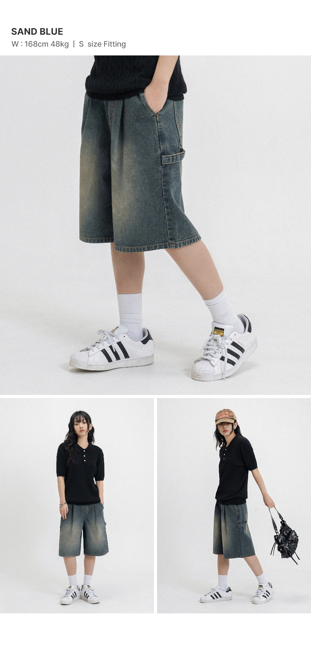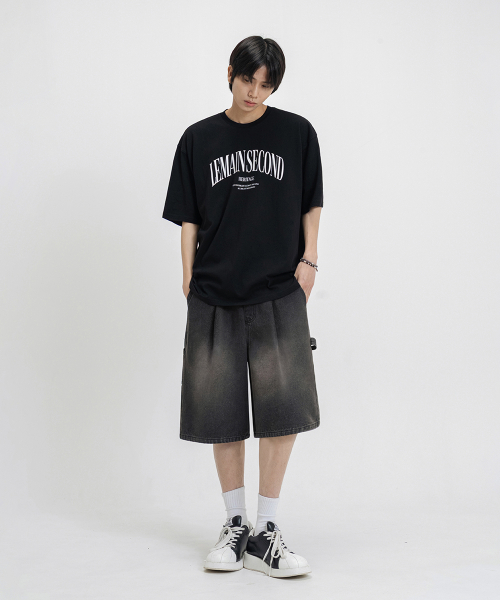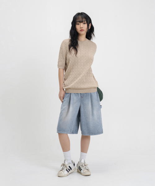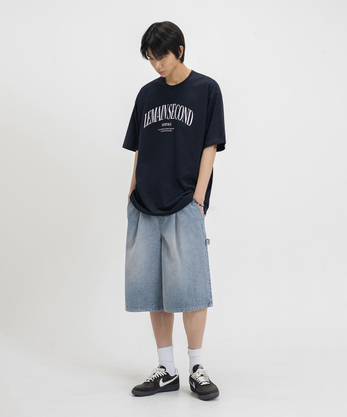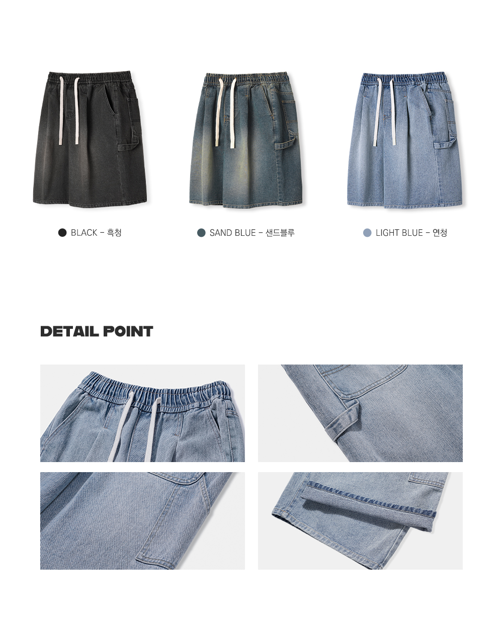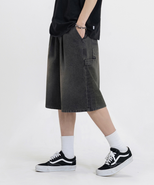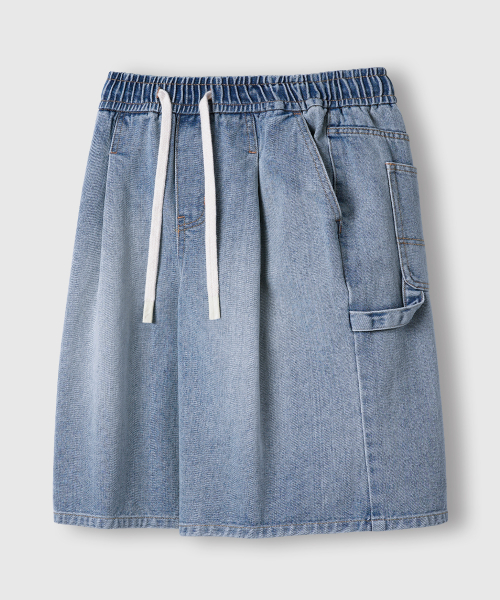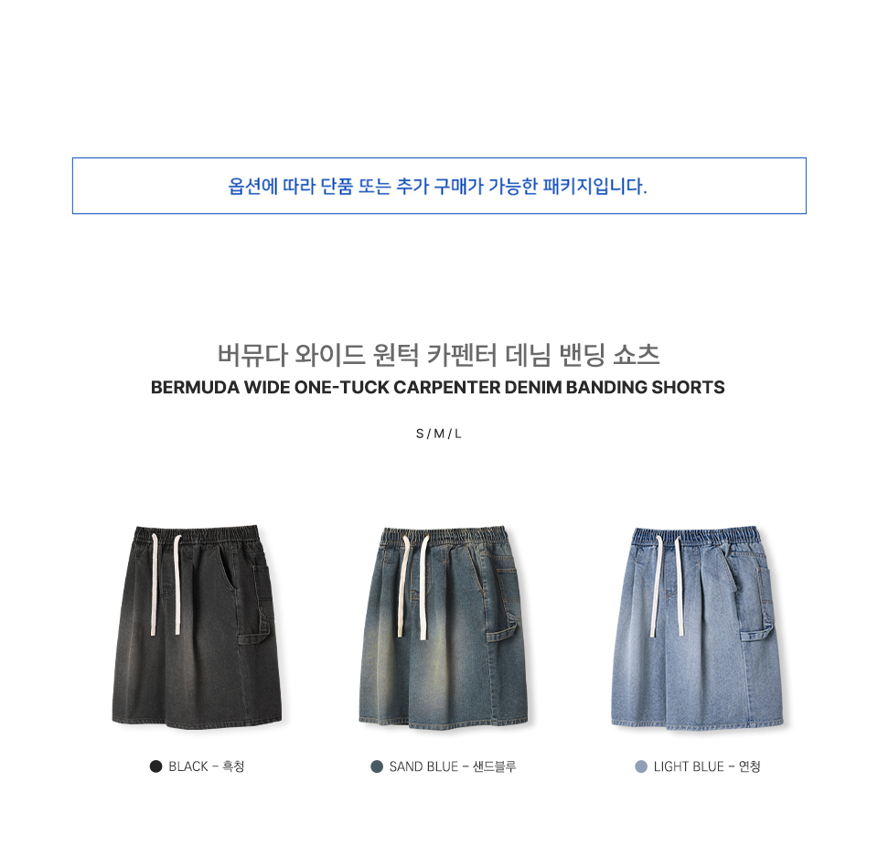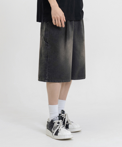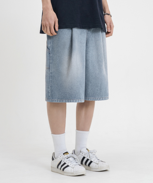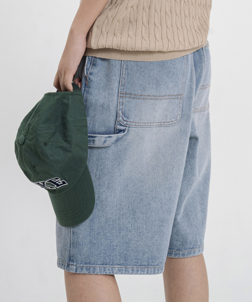 버뮤다 와이드 원턱 카펜터 데님 밴딩 쇼츠_3COLOR