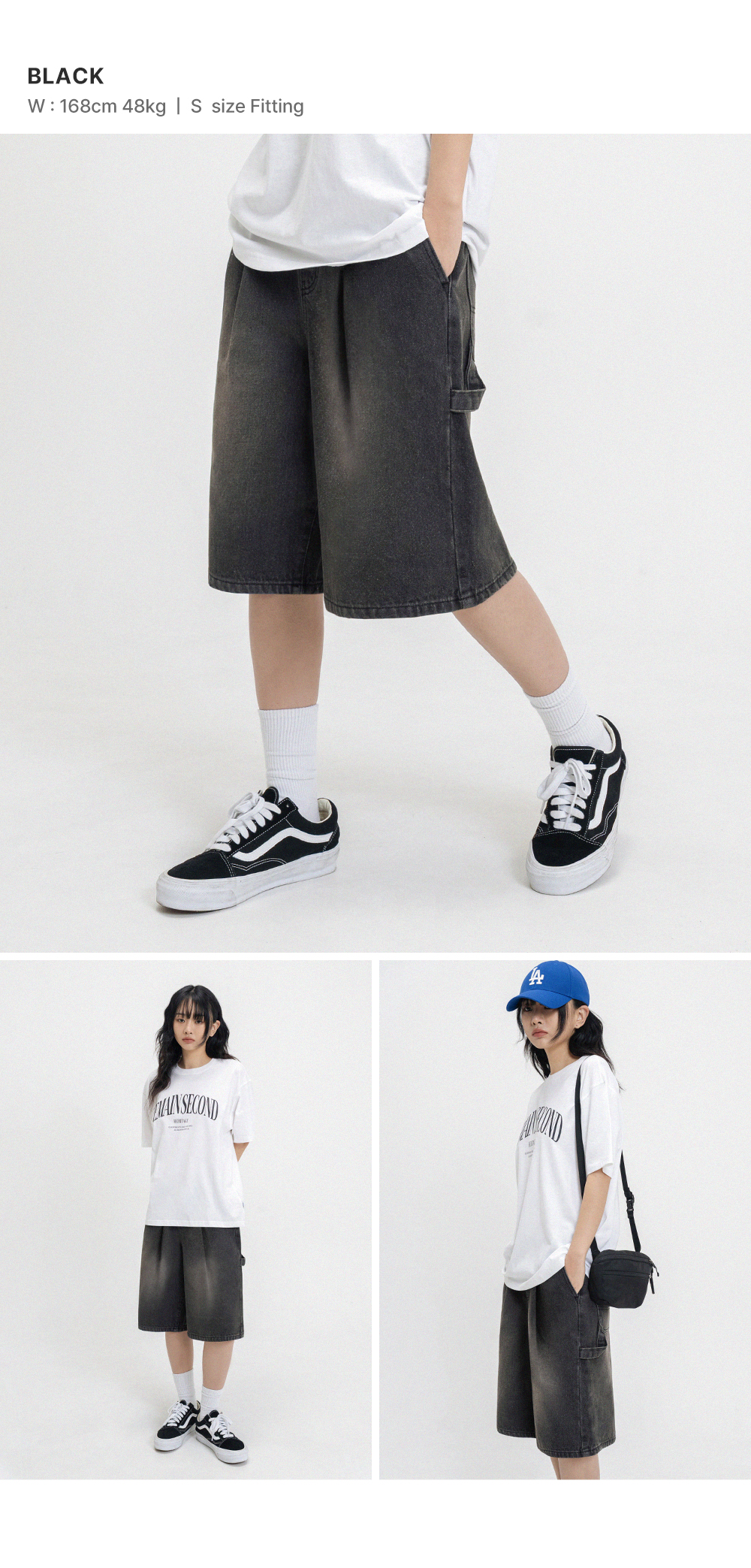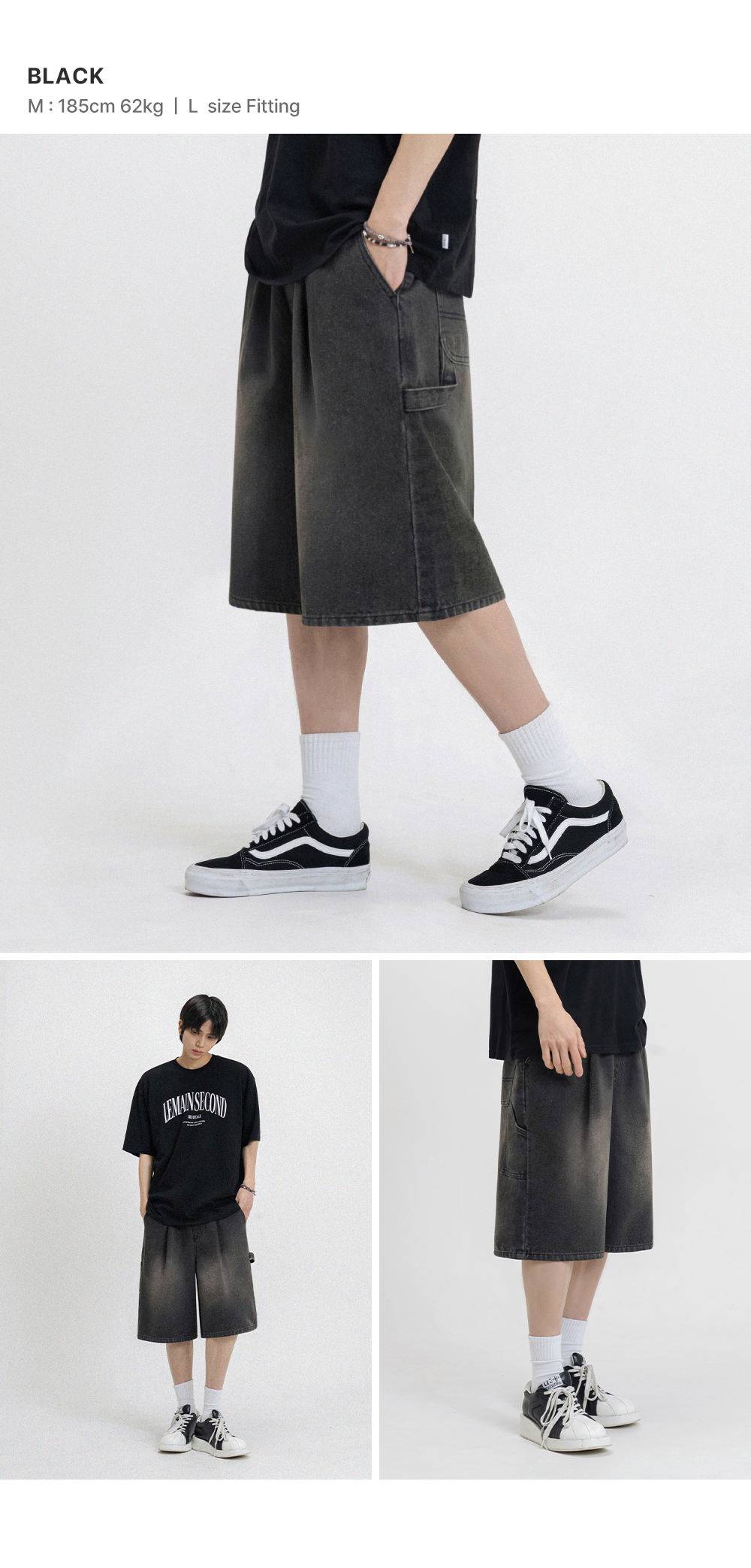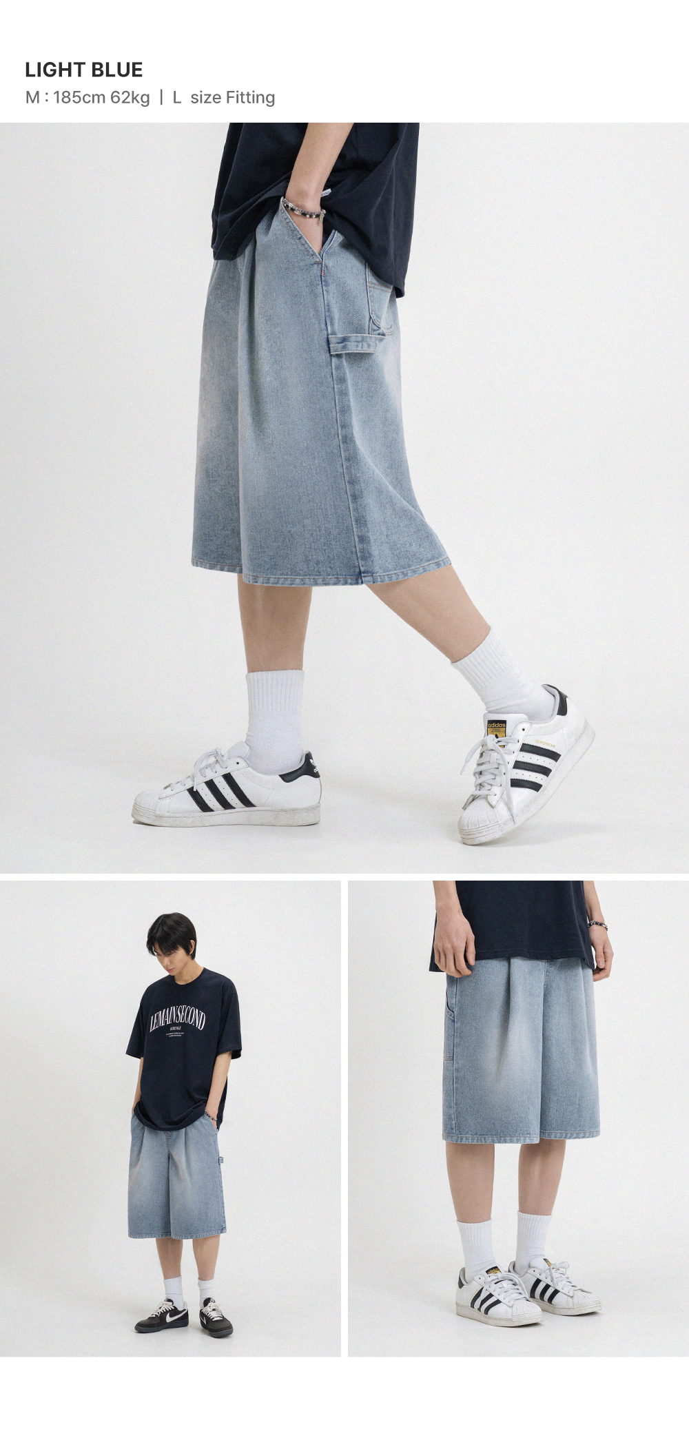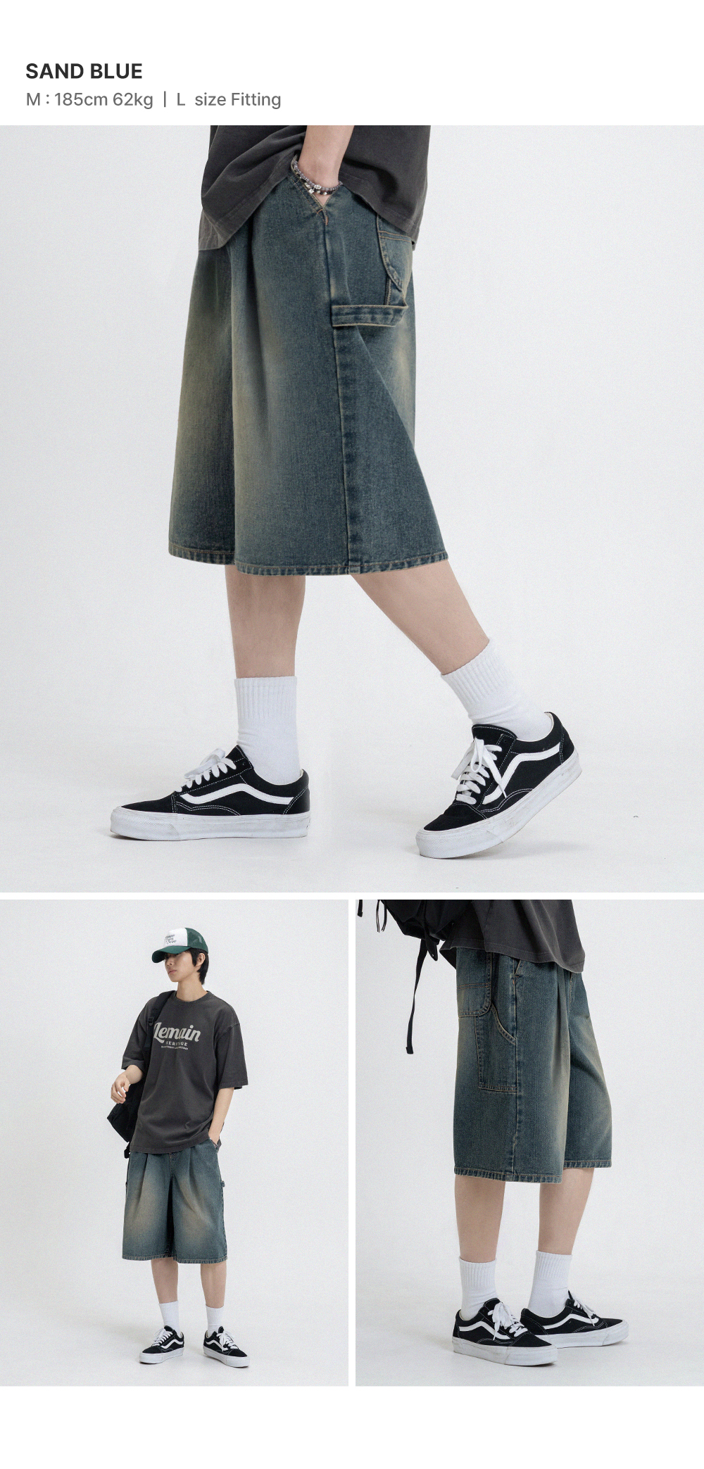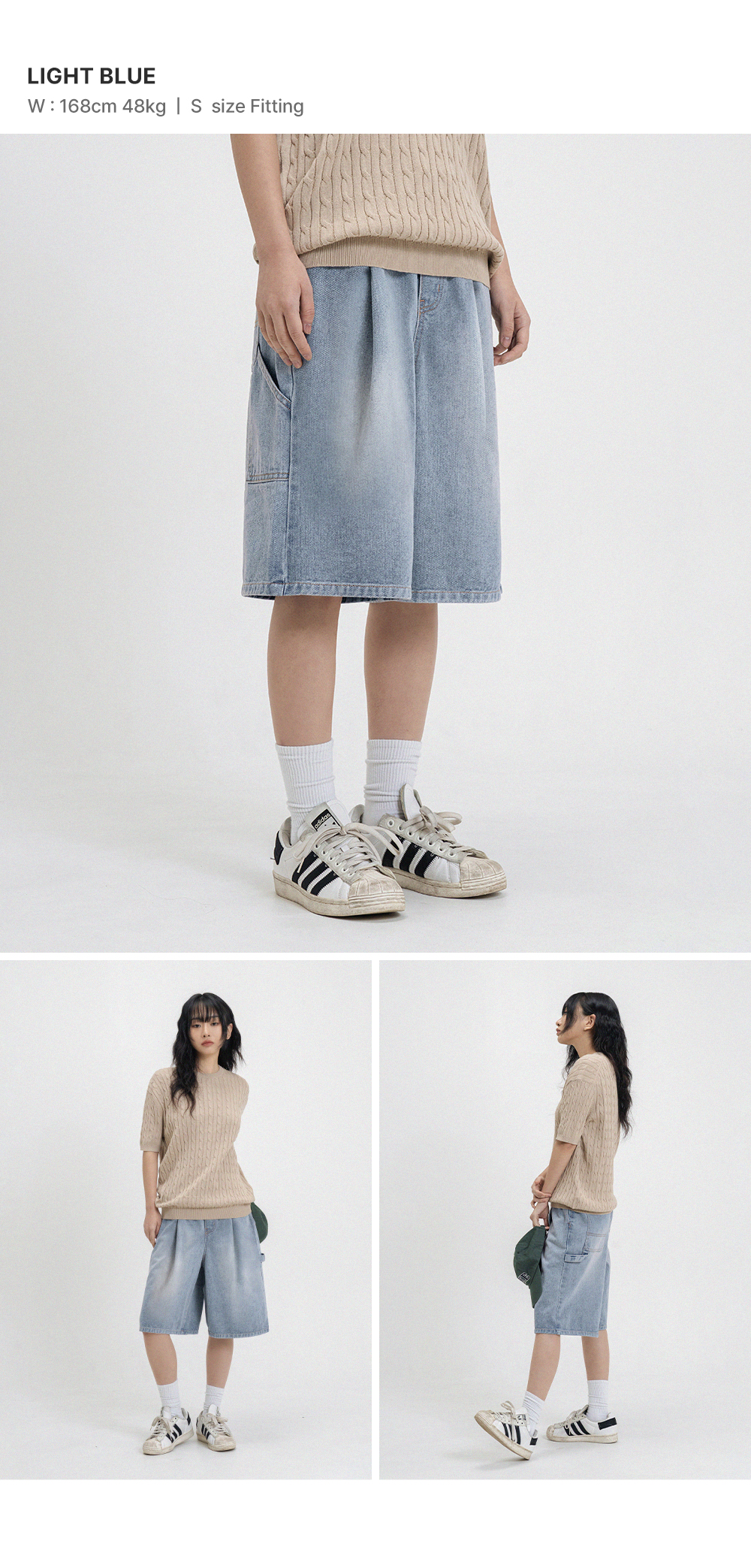 버뮤다 와이드 원턱 카펜터 데님 밴딩 쇼츠_3COLOR