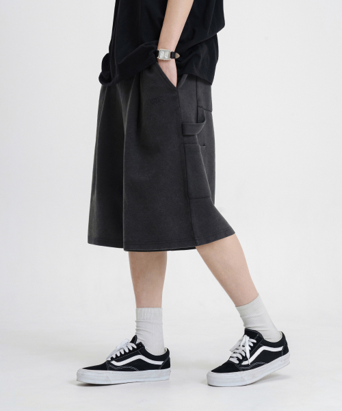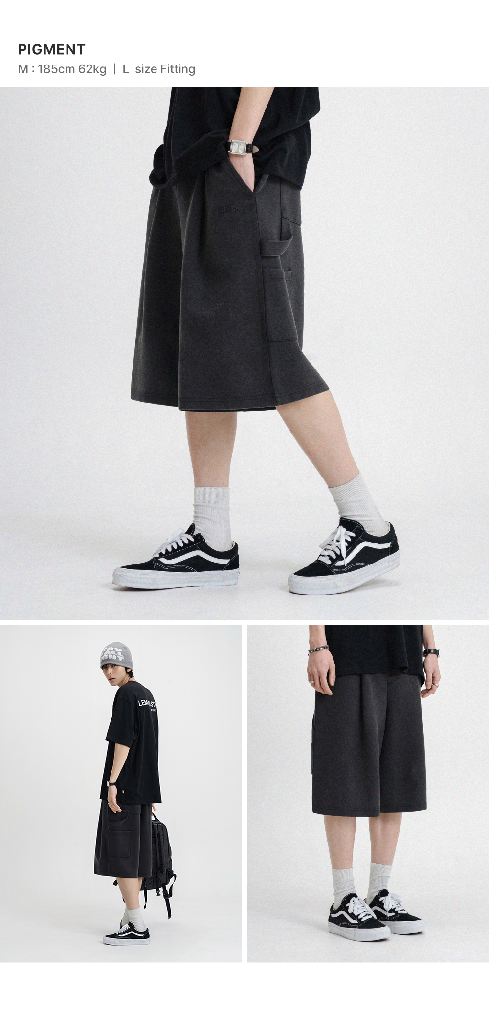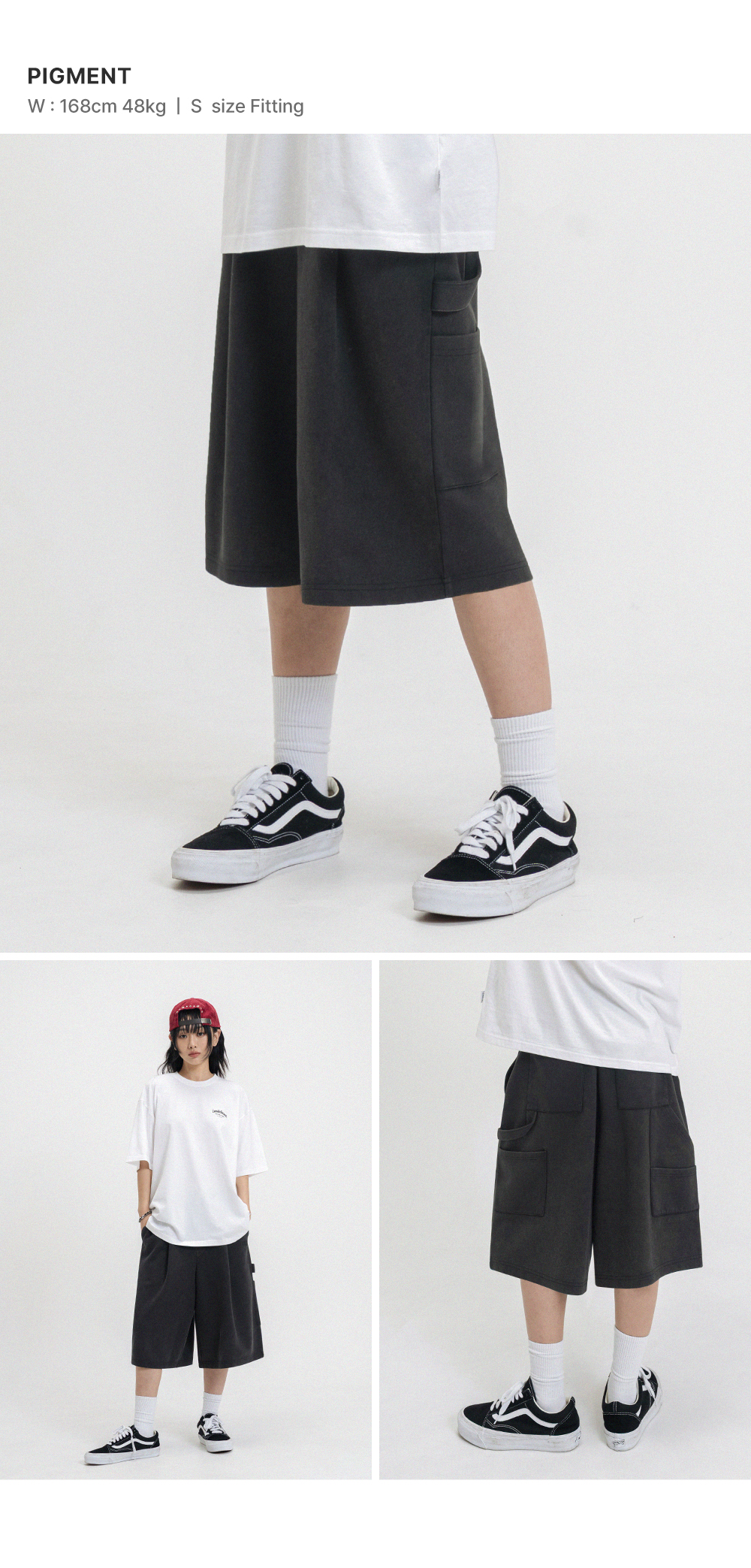 버뮤다 와이드 원턱 카펜터 스웨트 쇼츠 [피그먼트]