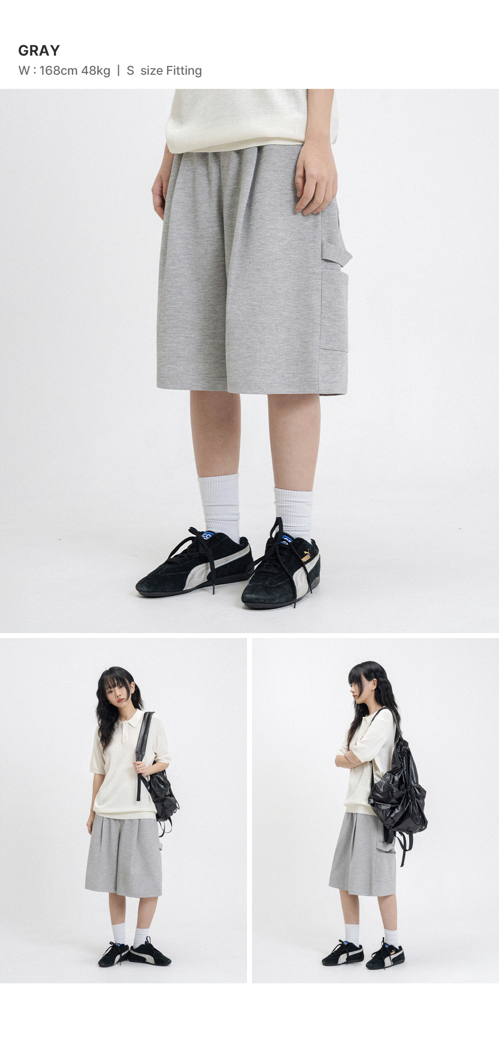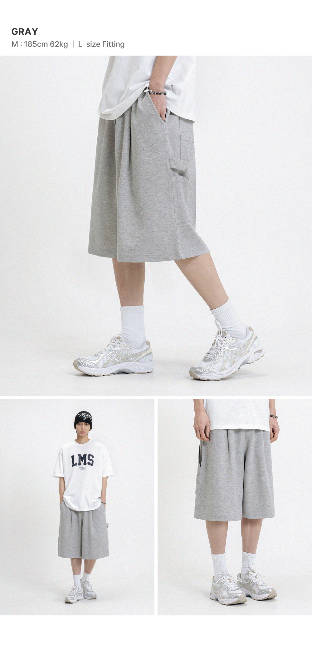 버뮤다 와이드 원턱 카펜터 스웨트 쇼츠 [그레이]