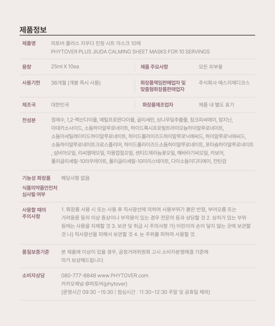 지우다 진정 시트마스크 10매 (+ 지우다 시트 마스크 2P 증정)