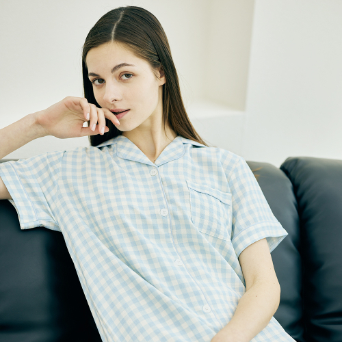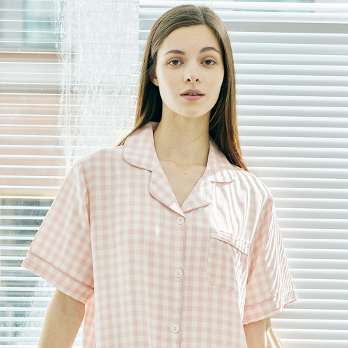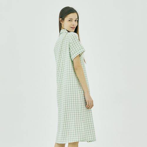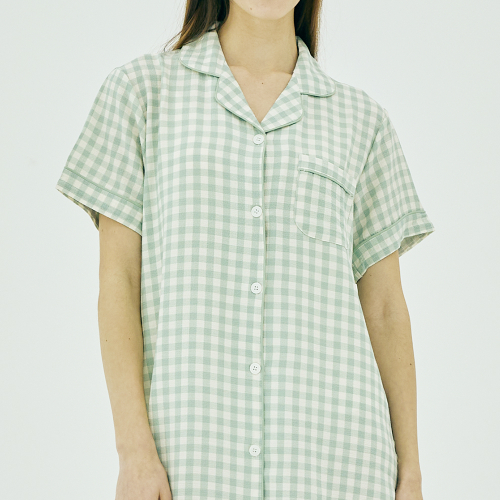 여성 윈디 체크 반팔 원피스 잠옷