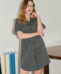 소프트필 여성 스트라이프 반팔 카라 원피스 잠옷