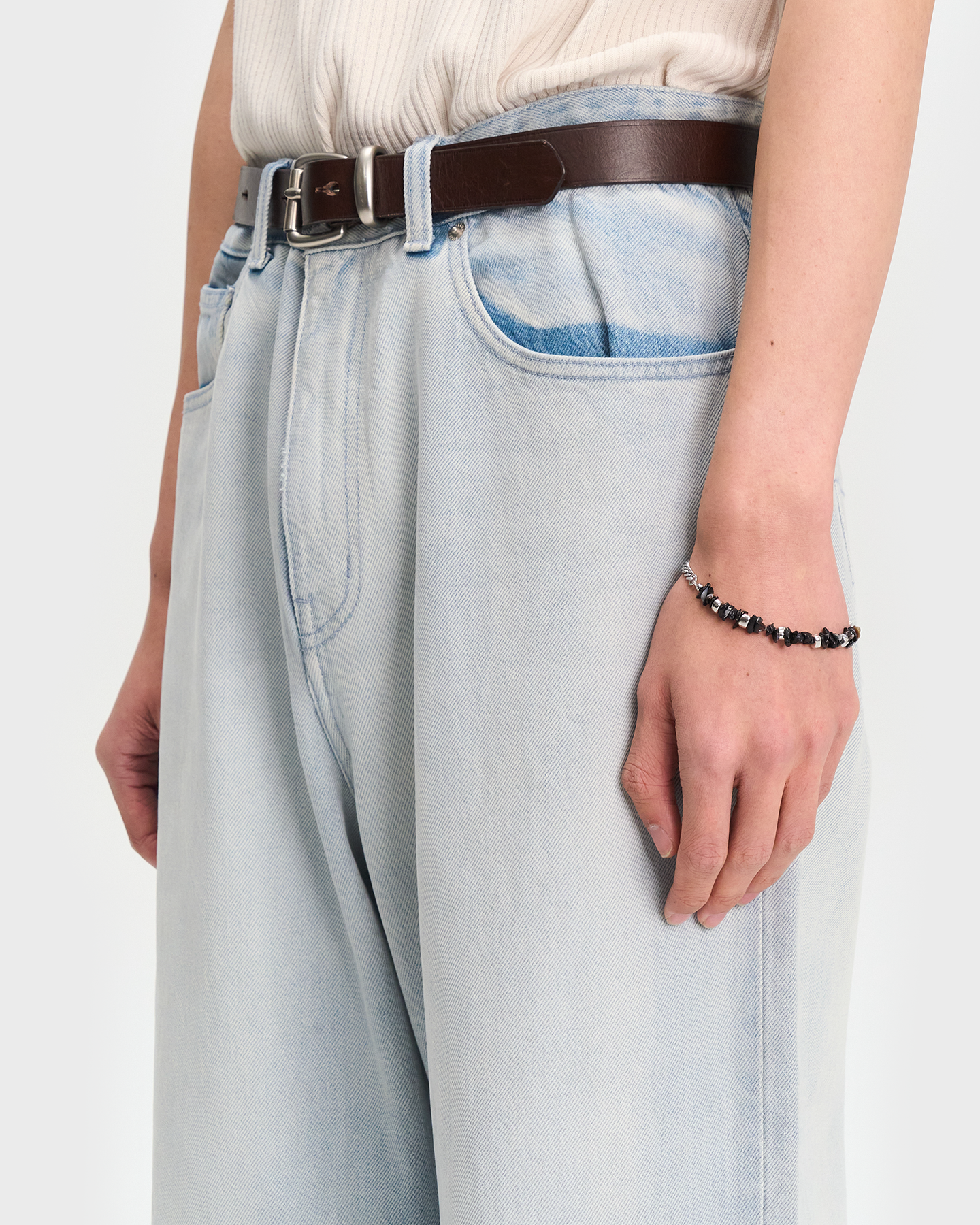 비정형적인 어반 빈티지 무드의 팔찌.
