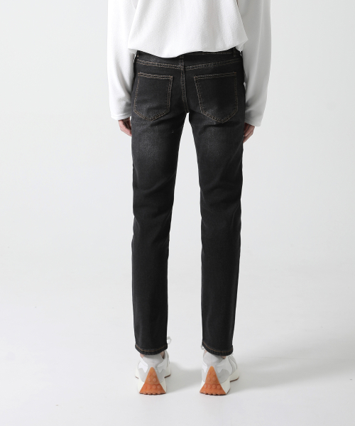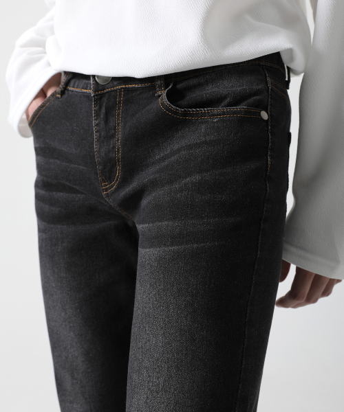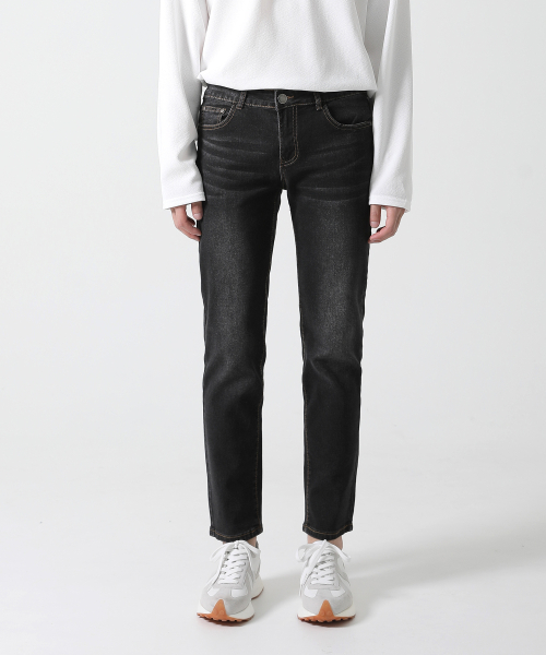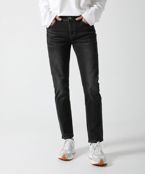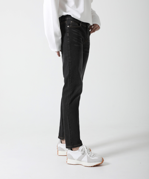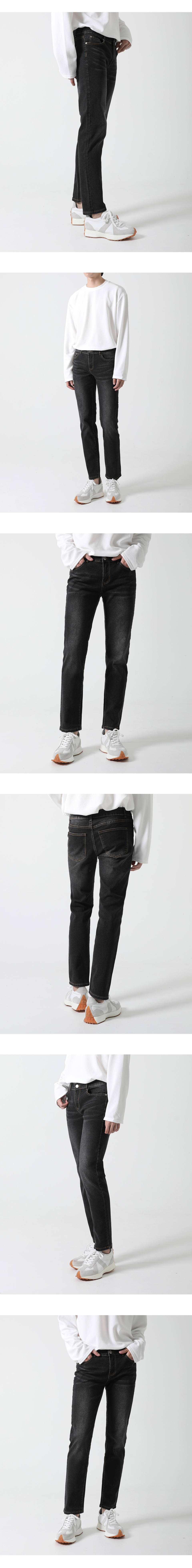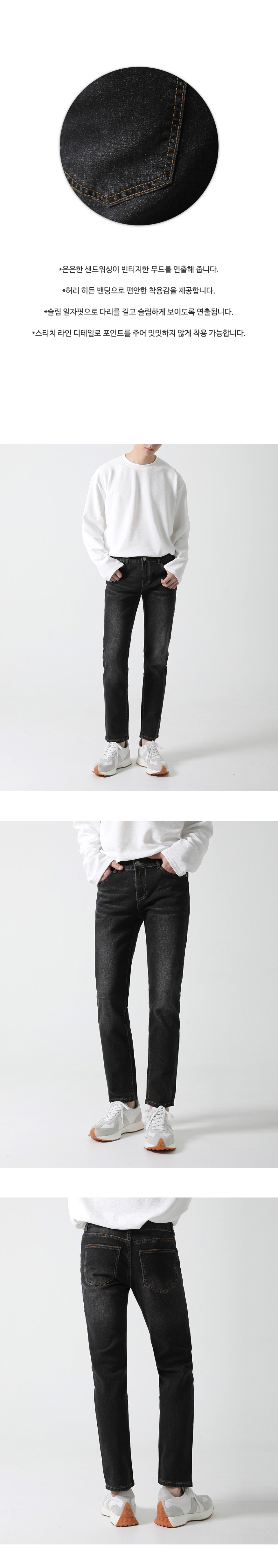 속밴딩 블랙 샌드워싱 일자 청바지