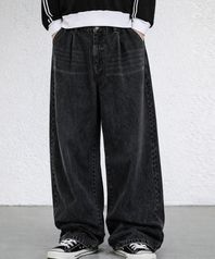 블랙 워시드 벌룬 슈퍼 와이드 데님 팬츠