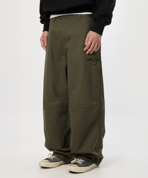 더블 절개 워싱 커브드 팬츠 [베이지]